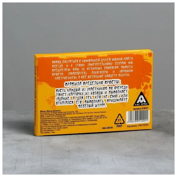 Купить игра для компании "фанты буханты" 20 карт от 100 руб. с доставкой до пункта выдачи в Североуральске. Интернет магазин ДекаМаркет. Оплата при получении.
